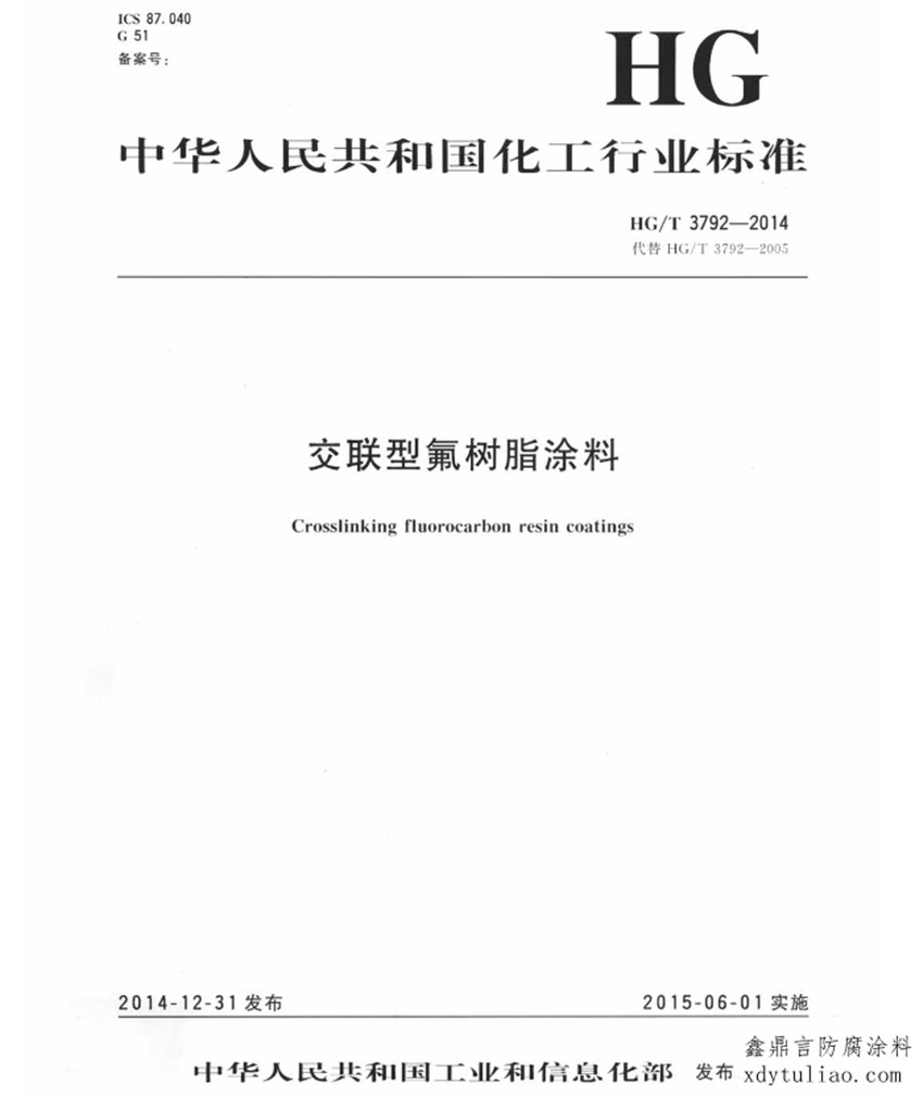 HG/T 3792-2005《交聯型氟樹脂涂料》